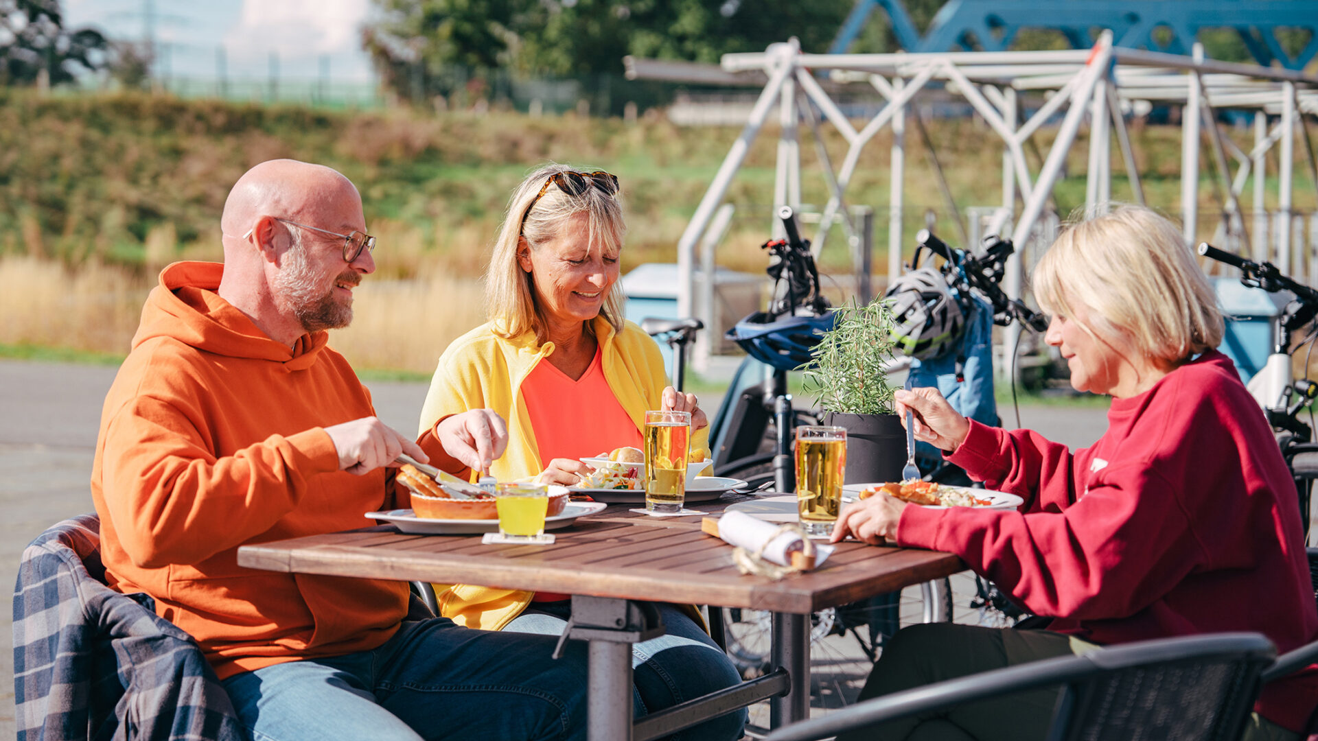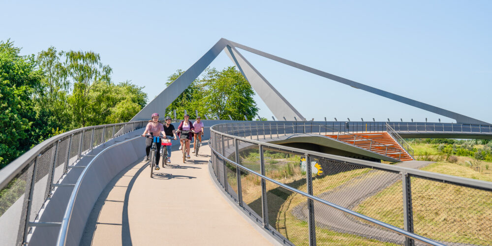 Und weil die echten Abenteurer*innen unter euch immer auch das Besondere suchen, warten entlang der Route zwei Übernachtungsorte, die nicht nur Radreisende in Staunen versetzen: „dasparkhotel“ am Hof Emscher-Auen in Castrop Rauxel und sein Pendant im BernePark Bottrop.