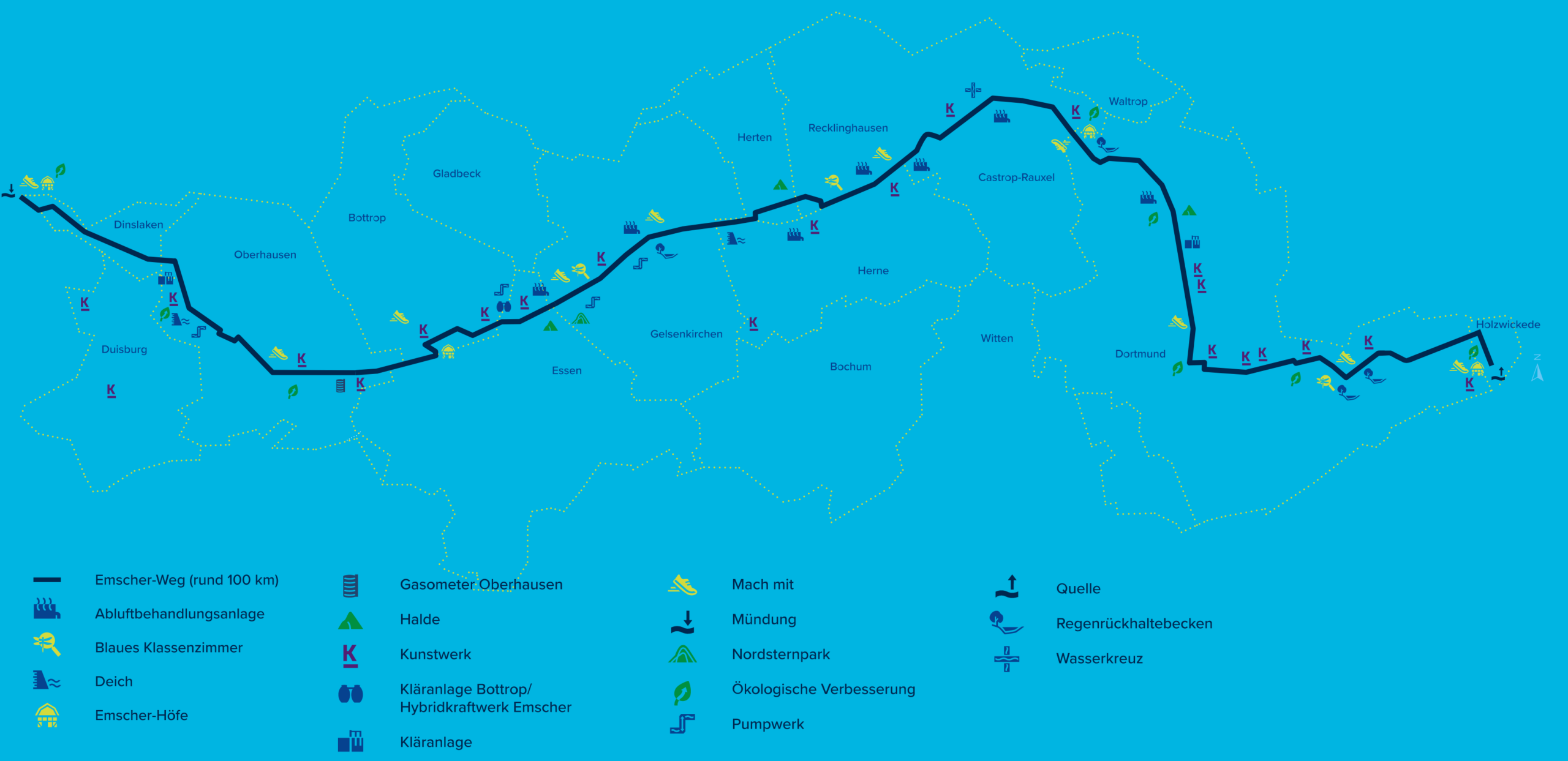 Etwa 70 Kilometer vom Start entfernt liegt der BernePark in Bottrop, eine stillgelegte Kläranlage aus den 1950er-Jahren, direkt am Rhein-Herne Kanal, der Berne und der Emscher. Durch die Nähe zur A42, einer der befahrensten Autobahnen im Ruhrgebiet, nehmt ihr die Verkehrsgeräusche wie ein beruhigendes Rauschen wahr – urbane Romantik pur. Hier erwartet euch eine beeindruckende Symbiose aus Industriekultur und moderner Landschaftsarchitektur: Kunst, Lichtinstallationen und ein zauberhafter Garten bieten die perfekte Kulisse für eure nächste Röhren-Übernachtung, umgeben von Geschichte und Natur. Auch hier gilt: Minimalismus pur, aber dafür unnachahmliche Naturerlebnisse, im Moment sein und die Stille erleben. Und das alles mittendrin!